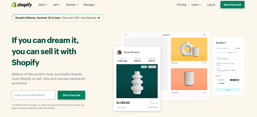 If you’re looking to sell online, now is the time to start. US ecommerce sales reached $1.03 trillion in 2022 for the first time ever! Shopify is a top-rated online store builder – it has the most comprehensive set of tools on the market, and it came first in our customer satisfaction research with a 4.8 out of 5, beating both Squarespace and Wix.